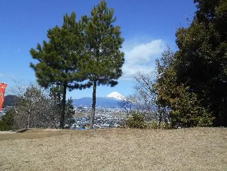 戻って坂を登ると「権現曲輪」である。熊野神社は、明応9年(1500)、宗瑞が勧請したといわれる。お参りして「二の丸」を通り「本丸」に着く。西方1.6km先には宗瑞が倒した茶々丸の「堀越御所跡」が見える。東側には豊臣軍が韮山城を包囲すべく陣を置いた山々が連なっている。