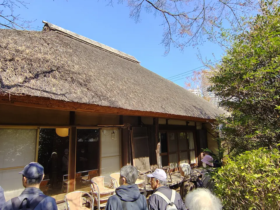 住民の請願によって大正5年に日本で初めて開設された辻堂駅の開設記念碑を出発地点として、2021年に新たに有形文化財に指定された福岡家を訪問しました。特別に屋敷内に入り、現在のご当主福田孝純さまより茅葺建築物の改修の話から明治新政府で活躍された曾祖父福岡孝弟の話まで詳しいお話を聞くことができました。駅から続く道路の真ん中に立っている楠が福岡家のシンボルツリーであり、道路工事の際に土地提供をしたが楠は残してほしいとの要請から現在も残っているといったお話も聞くことができました。