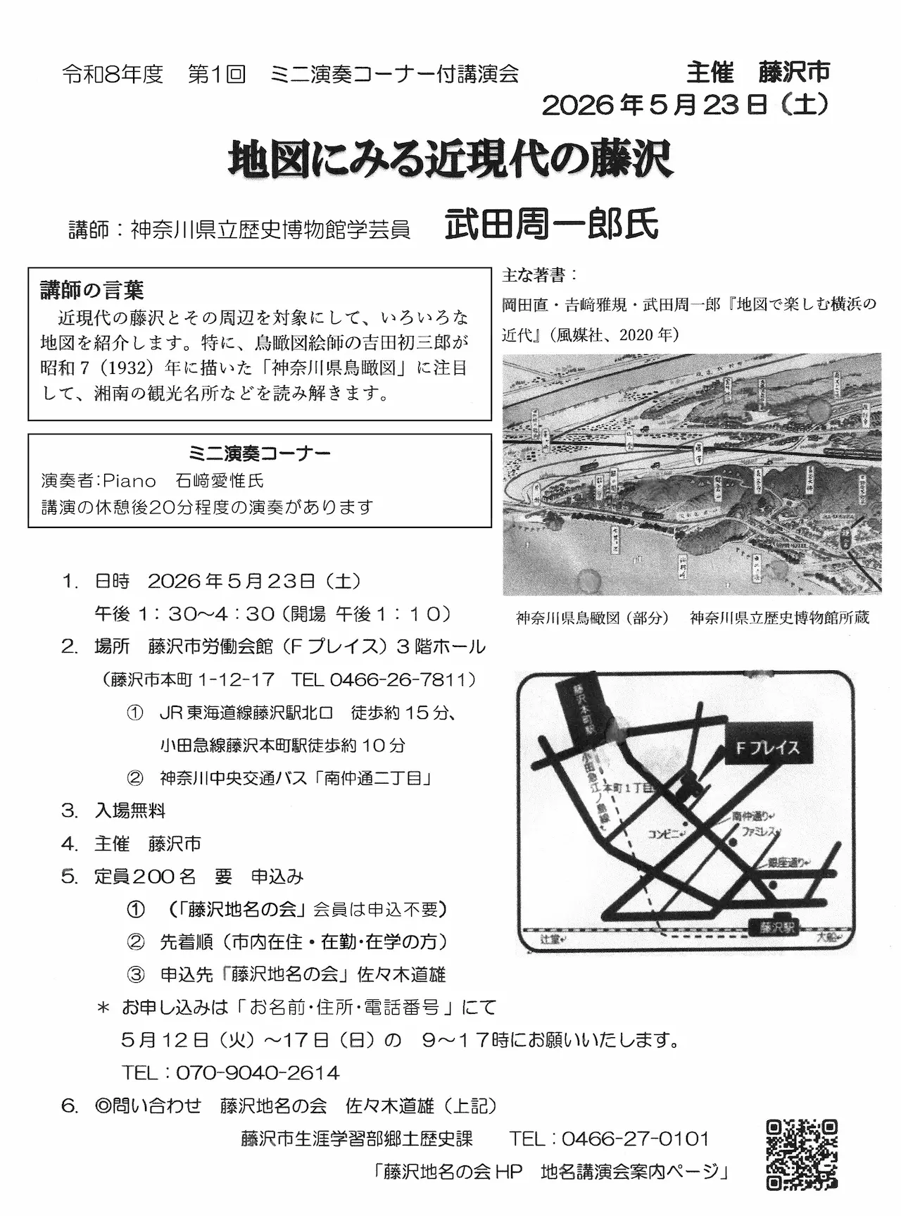 (「藤沢地名の会」会員は申込不要)先着順(市内在住・在勤・在学の方)